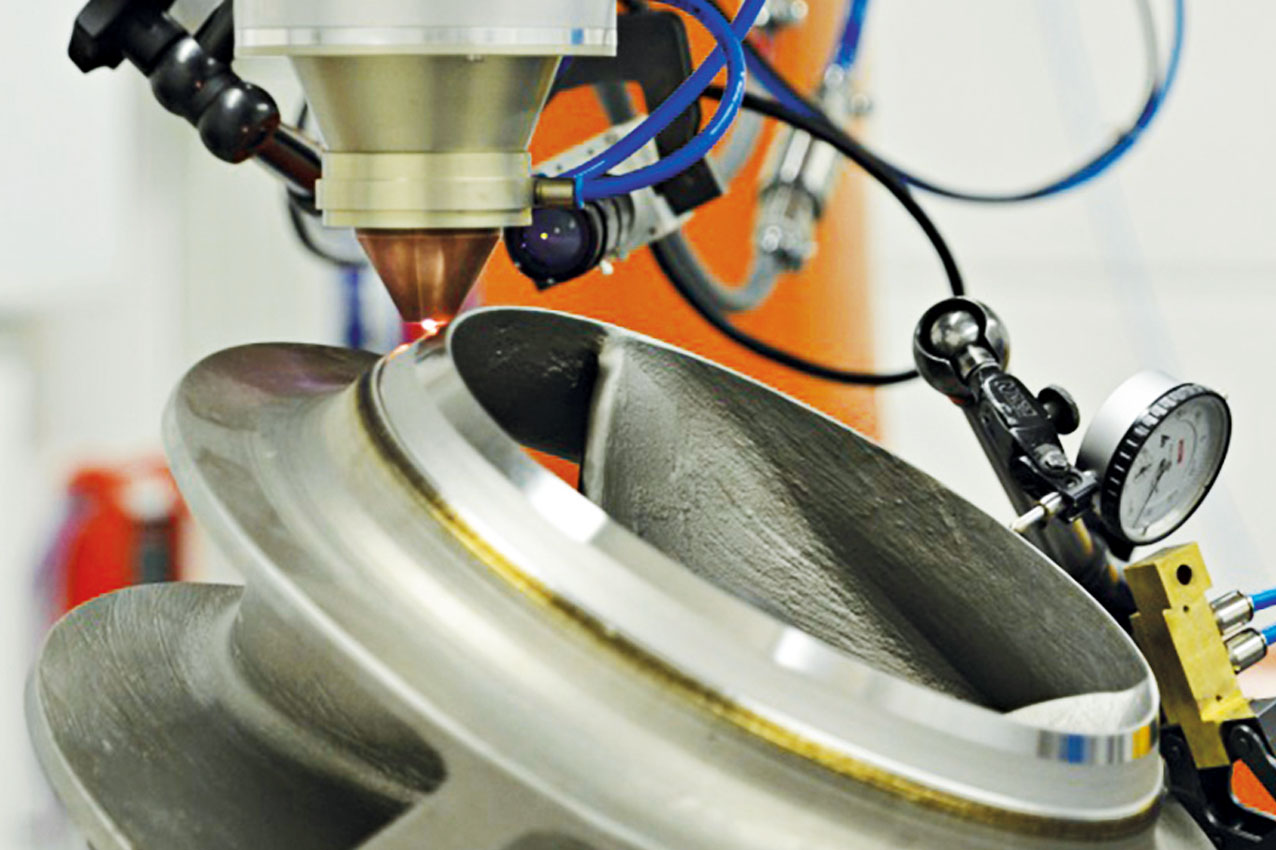 3D-Generieren oder additive Fertigung hat das Potential, bisherige Konstruktionsregeln und Fertigungsprozesse zu revolutionieren. Mit ihrer Neuentwicklung des koaxialen Direktdiodenlasers ProFocus wird ein wichtiger Beitrag zu diesem Wandel geleistet. Der 1 kW Laserkopf mit sechs koaxial angeordneten Einzelstrahlen um die Werkstoffzuführung ist flexibel für das Auftragschweißen mit Pulver oder Draht. Strahlenzeugung und Optik des Direktdiodenlasers befinden sich in einem Bearbeitungskopf. Durch den koaxialen Aufbau ist eine vollkommen richtungsunabhängige Bearbeitung gewährleistet. Ultra-HDR-Kameras sorgen dabei für eine sichere Prozessüberwachung. Im Gegensatz zu pulverbettbasierten generativen Technologien kann mit diesem System an jedem bestehenden Halbzeug angesetzt und beliebig große Geometrieelemente aufgebaut werden.