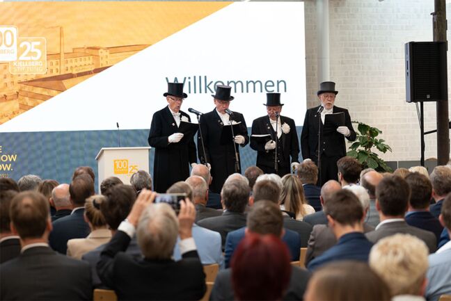 Am Vormittag fand der offizielle Festakt in der Kulturweberei Finsterwalde statt, die durch ihren stilvollen Industriecharme eine gelungene Atmosphäre bot. Neben den Mitarbeitenden waren Partner des Unternehmens sowie Politiker aus Kommunal-, Landes-und Bundesebene Ehrengäste. Zu Ihnen gehörte der Ministerpräsident des Landes Brandenburg, Dr. Dietmar Woidke, der dankbare Grüße in Richtung der Mitarbeitenden richtete. Außerdem nahmen der brandenburgische Minister für Wirtschaft, Arbeit und Energie, Prof. Dr. Jörg Steinbach, der Bundestagsabgeordnete Hannes Walter und der Landrat Christian Heinrich-Jaschinski persönlich teil. Jörg Gampe, Bürgermeister der Stadt Finsterwalde, freute sich über das soziale Engagement der Kjellberg-Stiftung, die 25-jähriges Bestehen feierte. Eröffnet wurde die Veranstaltung durch die Finsterwalder Sänger, die extra für diesen Anlass eine Strophe gedichtet hatten. Ein besonderes Highlight stellte die Videobotschaft mit Glückwünschen der Geschäftspartner aus aller Welt dar. Die Festveranstaltung wurde kulturell umrahmt vom Duo Johanna Zmeck (Piano) und Nassib Ahmadie (Cello). Sandmalerin Polina führte in einer emotionalen Reise durch die 100-jährige Geschichte von Kjellberg Finsterwalde. Diese ist fortan in der historischen Ausstellung im Tagungszentrum erlebbar, die ebenfalls an diesem Tag von Dr. Dietmar Woidke, Christian Heinrich-Jaschinski, Jörg Gampe, Volker Krink und den Finsterwalder Sängern eröffnet wurde.