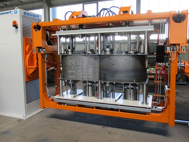 Vorrichtung zum Verdichten von Drahtbunden nach dem Drahtziehprozess – auch als Ausführung mit Waage möglich. Die Beladung erfolgt mit speziellen, von der VWP hergestellten, Klappkreuzen. Die Entnahme des abgebundenen Drahtbundes erfolgt mit Staplerdornen, die ebenfalls von der VWP geliefert werden können.
