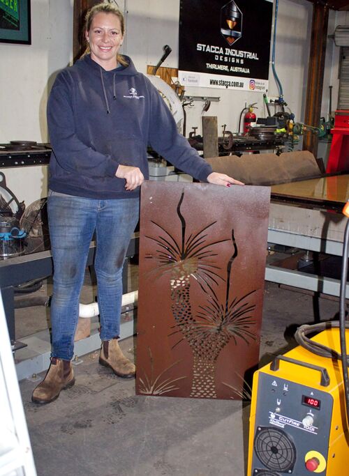 Kreatives Plasmaschneiden in Australien: Dafür steht Stacca Industrial Designs. Inhaberin Stacey Fagan erstellt kundenspezifische Metalldesigns: von Grundstücksschildern und Feuerstellen bis hin zu spezialisierten Industrieanlagen.
